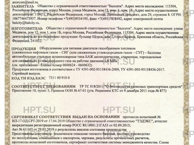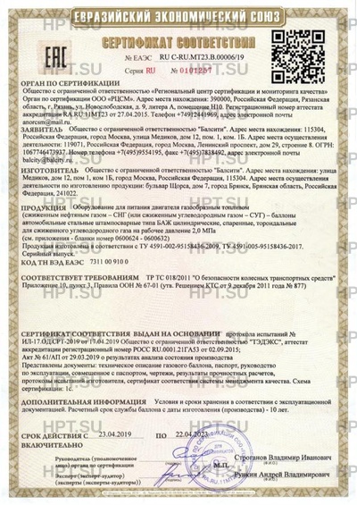 Оборудование для питания двигателя газообразным топливом (сжиженным нефтяным газом – СНГ (или сжиженным углеводородным газом – СУГ) – баллоны автомобильные стальные штампосварные типа БАЖ цилиндрические, спаренные, тороидальные для сжиженного углеводородного газа на рабочее давление 2,0 МПа
