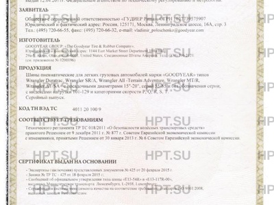 - Общество с ограниченной ответственностью «ГУДИЕР Раша», ОГРН 1027739575907 Тел.: (495) 720-66-55, факс: (495) 720-66-32, е-mail: vladimir_poleschenko@goodyear.com