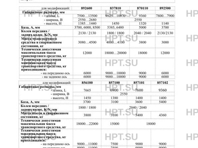 Количество осей/колес 2/4 (с односкатной ошиновкой) - кроме мод. 856100, 837810; 2/8 (с двускатной ошиновкой) - для мод. 856100, 837810