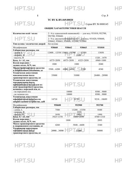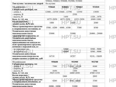 | Количество осей/колес | 2 / 4 (с односкатной ошиновкой) - для мод. 931010, 952700, 992700, 938660; 2 / 8 (с двускатной ошиновкой)- для мод. 931020, 938660, 938662, 938663, 950600, 952900, 933060 |