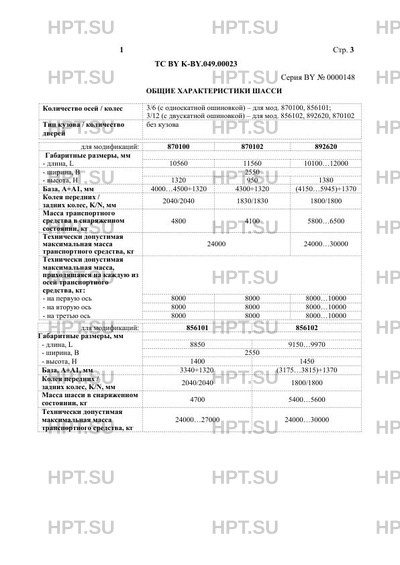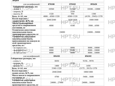 Количество осей/колес 3/6 (с односкатной ошиновкой) - для мод. 870100, 856101; 3/12 (с двускатной ошиновкой) - для мод. 856102, 892620, 870102