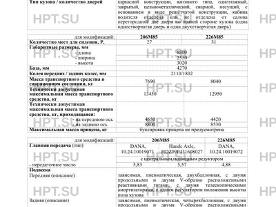 | Категория ТС | М3(шасси автобуса класса I для модификации 206М85; класса II для модификации 22… |