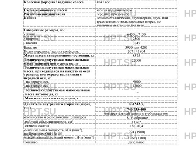 | ДВС | КАМАЗ, 740.735-400 четырехтактный дизель с турбонаддувом |