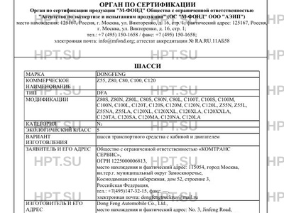 | Предприятие-изготовитель | Dong Feng Automobile Co., Ltd. |