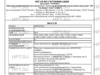 | Марка ТС | DONGFENG |