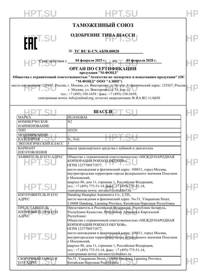 | Тип ТС | 1032N |