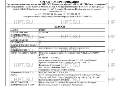| Марка ТС | FOTON |