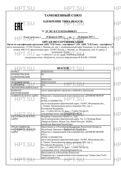 | Предприятие-изготовитель | Dongfeng Commercial Vehicle Co., Ltd. |