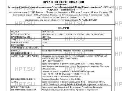 | Марка ТС | HUANGHAI |