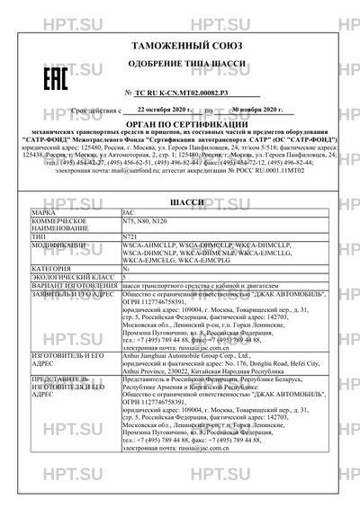 | Сборочный завод | Anhui Jianghuai Automobile Group Corp., Ltd., Light-duty Commercial Vehicle Branch Company, юридический и фактический адрес: No. 5188, Lianhua Road, Xingang South District, Taohua Industrial Park, Feixi County, Hefei City, Anhui Province, Китайская Народная Республика |