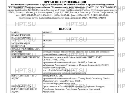| Заявитель | Общество с ограниченной ответственностью "ЮТУН-РУС", ОГРН 1137746272762, юридический и фактический адрес: 105005, г. Москва, набережная Академика Туполева, д. 15, корп. 2, пом. №56,57,58,59, Российская Федерация, тел.: +7 (495) 269-47-94, факс: -, электронная почта: yutongrussia@gmail.com |