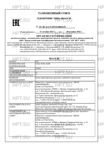| Марка ТС | JAC |