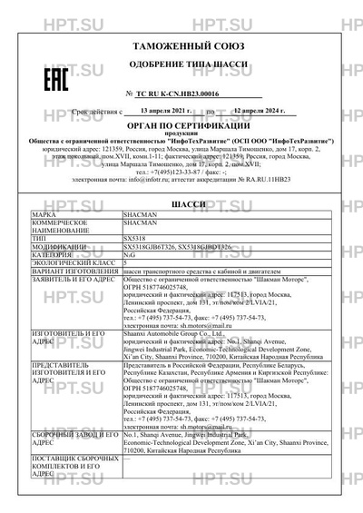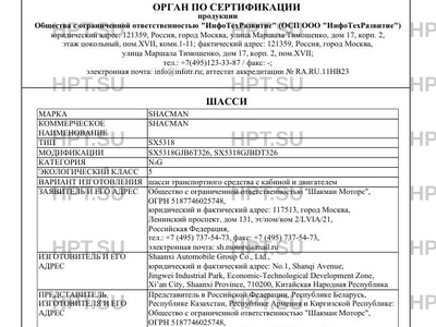 | Заявитель | Общество с ограниченной ответственностью "Шакман Моторс", ОГРН 5187746025748, юридический и фактический адрес: 117513, город Москва, Ленинский проспект, дом 131, эт/пом/ком 2/LVIA/21, Российская Федерация, тел.: +7 (495) 737-54-73, факс: +7 (495) 737-54-73, электронная почта: sh.motors@mail.ru |