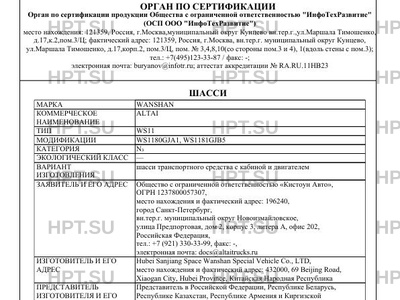 | Предприятие-изготовитель | Hubei Sanjiang Space Wanshan Special Vehicle Co., LTD, место нахождения и фактический адрес: 432000, 69 Beijing Road, Xiaogan City, Hubei Province, Китайская Народная Республика |