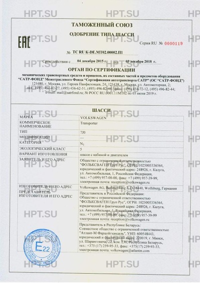 | Номер документа | ТС RU К-DE.МТ02.00002.П1 |
