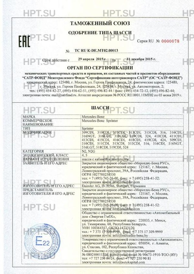 | Коммерческое наименование | Mercedes-Benz Sprinter |