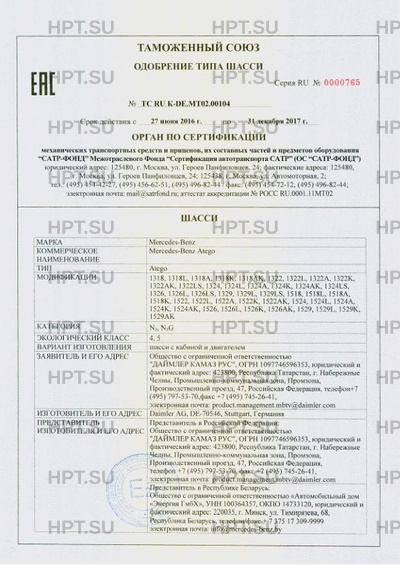 | Коммерческое наименование | Mercedes-Benz Atego |