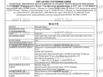 Представитель изготовителя Представитель в Российской Федерации: Общество с ограниченной ответственностью "ДАЙМЛЕР КАМАЗ РУС", ОГРН 1097746596353, юридический и фактический адрес: 423800, Республика Татарстан, гор. Набережные Челны, пр-д Производственный, д.47, Российская Федерация, тел.: +7 (495) 797-5 Представитель в Республике Армения: Общество с ограниченной ответственностью "Авангард Моторс", УНН 26411006069, юридический и фактический адрес: 0056, город Ереван, проспект Гая, 14/3, Республика Армения, тел.: +7 374-60-680000, факс: +7 374-10-668900, электронная почта: agm@mercedes-benz.am