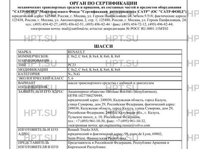 | Предприятие-изготовитель | Renault Trucks SAS, юридический и фактический адрес: 99, route de Lyon, 69802, Saint-Priest, Французская Республика |