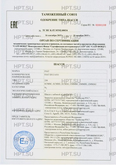 Коммерческое наименование FIAT DUCATO