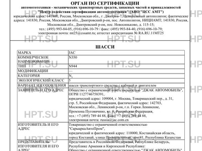 Представитель изготовителя Представитель в Российской Федерации, Республике Беларусь, Республике Армения и Киргизской Республике: Общество с ограниченной ответственностью "ДЖАК АВТОМОБИЛЬ", ОГРН 1127746758391, юридический адрес: 109004, г. Москва, Товарищеский пер., д. 31, стр. 5, Российская Федерация, фактический адрес: 142703, Московская обл., Ленинский р-он, г.п. Горки Ленинские, Промзона Пуговичино, вл. 8, Российская Федерация, тел.: +7 (495) 789 44 88, факс: +7 (495) 789 44 88, электронная почта: russia@jac.com.cn