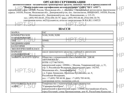 | Предприятие-изготовитель | Товарищество с ограниченной ответственностью "СарыаркаАвтоПром", юридический и фактический адрес: 110000, Костанайская область, город Костанай, улица Промышленная, дом 41, Республика Казахстан |