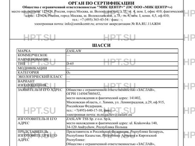 | Предприятие-изготовитель | ZASLAW TSS Sp. z o.o. Sp.k, место нахождения и фактический адрес: ul. Krakowska 140, 34-120 Andrychow, Республика Польша |