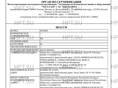 | Орган по сертификации | Орган по сертификации Негосударственная некоммерческая организация "Ассоциация по безопасности машин и оборудования "ТЕСТ-СДМ" ("АС "ТЕСТ-СДМ") |