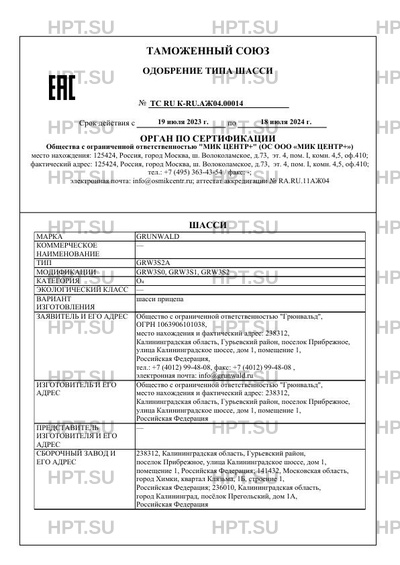 | Марка ТС | GRUNWALD |