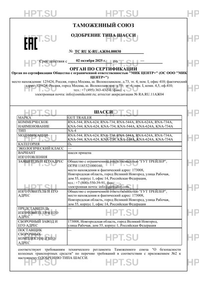 Марка ТС GUT TRAILER