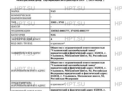 Предприятие-изготовитель Общество с ограниченной ответственностью "Ульяновский автомобильный завод" юридический и фактический адрес: 432034, г. Ульяновск, Московское шоссе, 92, Российская Федерация юридический и фактический адрес: 432034, г. Ульяновск, Московское шоссе, 92, Российская Федерация