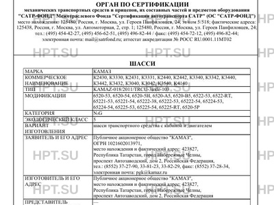 | Предприятие-изготовитель | Публичное акционерное общество "КАМАЗ", место нахождения и фактический адрес: 423827, Республика Татарстан, город Набережные Челны, проспект Автозаводский, дом 2, Российская Федерация |