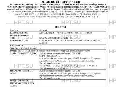 | Заявитель | Публичное акционерное общество "КАМАЗ", ОГРН 1021602013971, юридический и фактический адрес: 423827, Республика Татарстан, город Набережные Челны, проспект Автозаводский, дом 2, Российская Федерация, тел.: (8552) 37-27-90, 3 |
