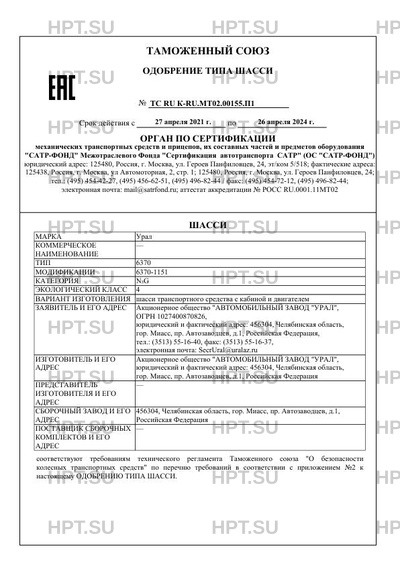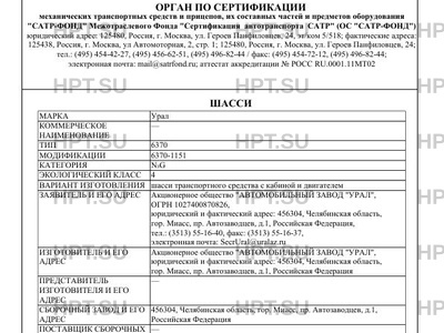 | Заявитель | Акционерное общество "АВТОМОБИЛЬНЫЙ ЗАВОД "УРАЛ", ОГРН 1027400870826, юридический и фактический адрес: 456304, Челябинская область, гор. Миасс, пр. Автозаводцев, д.1, Российская Федерация, тел.: (3513) 55-16-40, факс: (3513) 55-16-37, электронная почта: SecrUral@uralaz.ru |