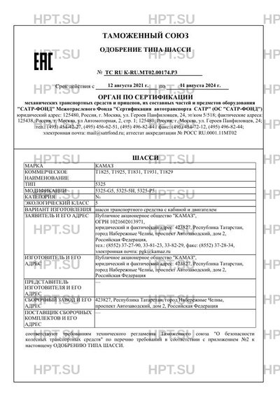 | Предприятие-изготовитель | Публичное акционерное общество "КАМАЗ", юридический и фактический адрес: 423827, Республика Татарстан, город Набережные Челны, проспект Автозаводский, дом 2, Российская Федерация |