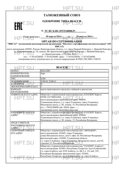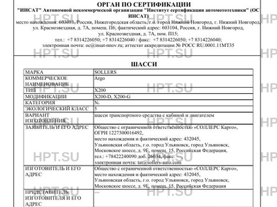 | Орган по сертификации | Орган по сертификации "ИНСАТ" Некоммерческого партнерства "Институт сертификации автомототехники" (НП "ИНСАТ") |