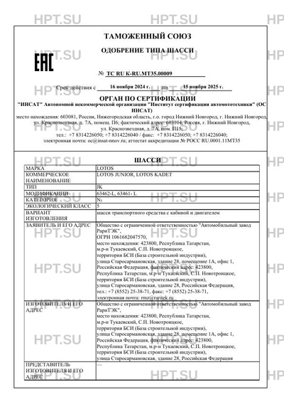 | Коммерческое наименование | LOTOS JUNIOR, LOTOS KADET |