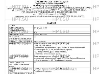| Модификации | SF-454, SF-454U SF-454 допускает возможность перемещения шасси в составе автопо… |