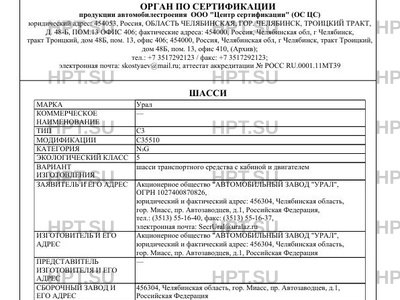 | Заявитель | Акционерное общество "АВТОМОБИЛЬНЫЙ ЗАВОД "УРАЛ", ОГРН 1027400870826, юридический и фактический адрес: 456304, Челябинская область, гор. Миасс, пр. Автозаводцев, д.1, Российская Федерация, тел.: (3513) 55-16-40, факс: (3513) 55-16-37, электронная почта: SecrUral@uralaz.ru |