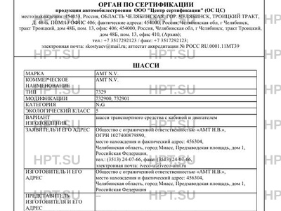 Предприятие-изготовитель Общество с ограниченной ответственностью "АМТ Н.В.", место нахождения и фактический адрес: 456304, Челябинская область, город Миасс, Предзаводская площадь, дом 1, Российская Федерация