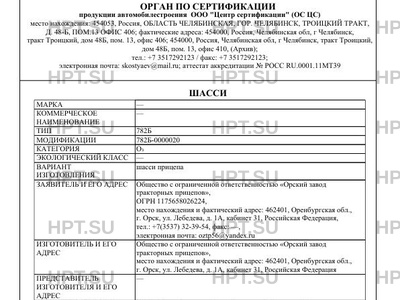 | Предприятие-изготовитель | Общество с ограниченной ответственностью "Орский завод тракторных прицепов", место нахождения и фактический адрес: 462401, Оренбургская обл., г. Орск, ул. Лебедева, д. 1А, кабинет 31, Российская Федерация |