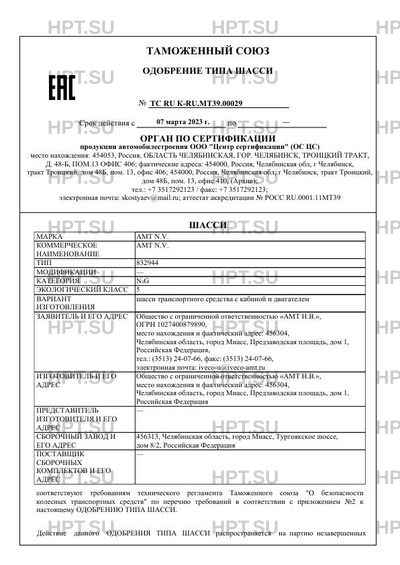 | Экологический класс | 5 ВАРИАНТ ИЗГОТОВЛЕНИЯ |