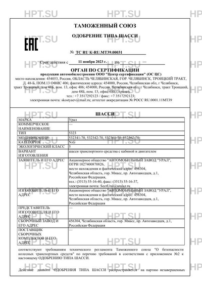 | Дополнительная информация | Конструкция допускает возможность перемещения шасси своим ходом по дорогам обще… |