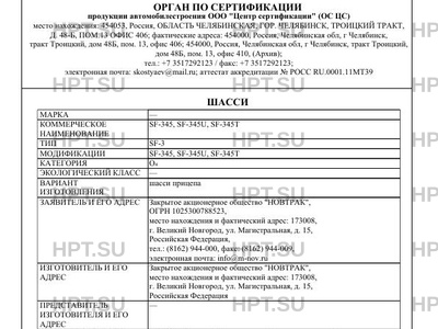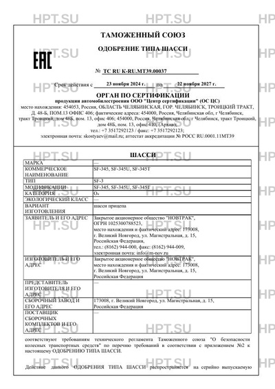 Предприятие-изготовитель Закрытое акционерное общество "НОВТРАК", место нахождения и фактический адрес: 173008, г. Великий Новгород, ул. Магистральная, д. 15, Российская Федерация