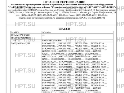 | Предприятие-изготовитель | SCANIA CV AB, место нахождения и фактический адрес: SE-151 87 Sodertalje, Королевство Швеция |