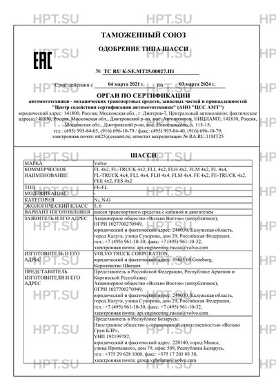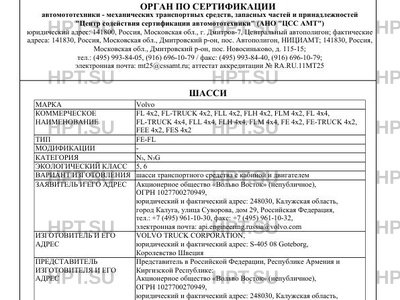 Предприятие-изготовитель VOLVO TRUCK CORPORATION, юридический и фактический адрес: S-405 08 Goteborg, Королевство Швеция Представитель в Российской Федерации, Республике Армения и Киргизской Республике: Акционерное общество "Вольво Восток" (непубличное), ОГРН 1027700270949, юридический и фактический адрес: 248030, Калужская область, город Калуга, улица Суворова, дом 29, Российская Федерация, тел.: +7 (495) 96