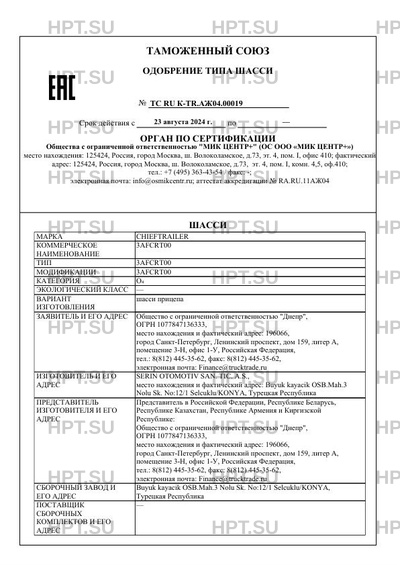 | Дополнительная информация | Конструкция шасси допускает возможность перемещения шасси в составе автопоезда … |