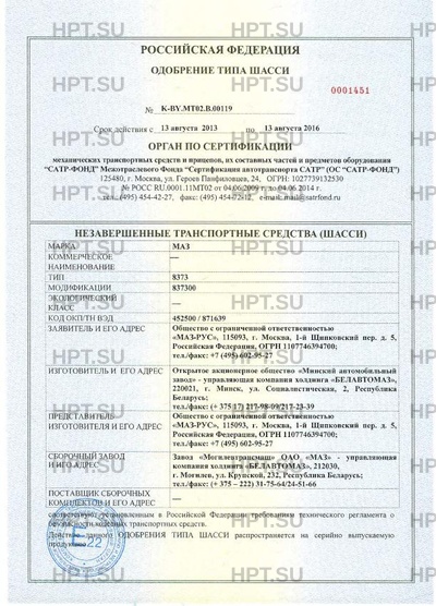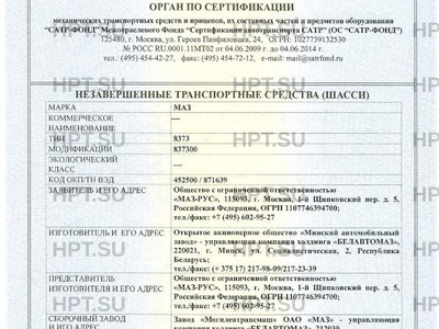 | Заявитель | Общество с ограниченной ответственностью «МАЗ-РУС», 115093, г. Москва, 1-й Щипковский пер. д. 5, Российская Федерация, ОГРН 1107746394700; тел./факс: +7 (495) 602-95-27 |