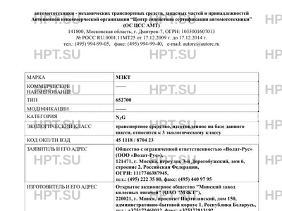 Предприятие-изготовитель Открытое акционерное общество "Минский завод колесных тягачей" (ОАО "МЗКТ"), 220021, г. Минск, проспект Партизанский, дом 150, административно-бытовой корпус 1, Республика Беларусь, тел.: +375172461012, факс: +375172913192