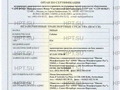 | Экологический класс | транспортное средство, изготовленное на базе данного шасси, относится к 4 эколо… |